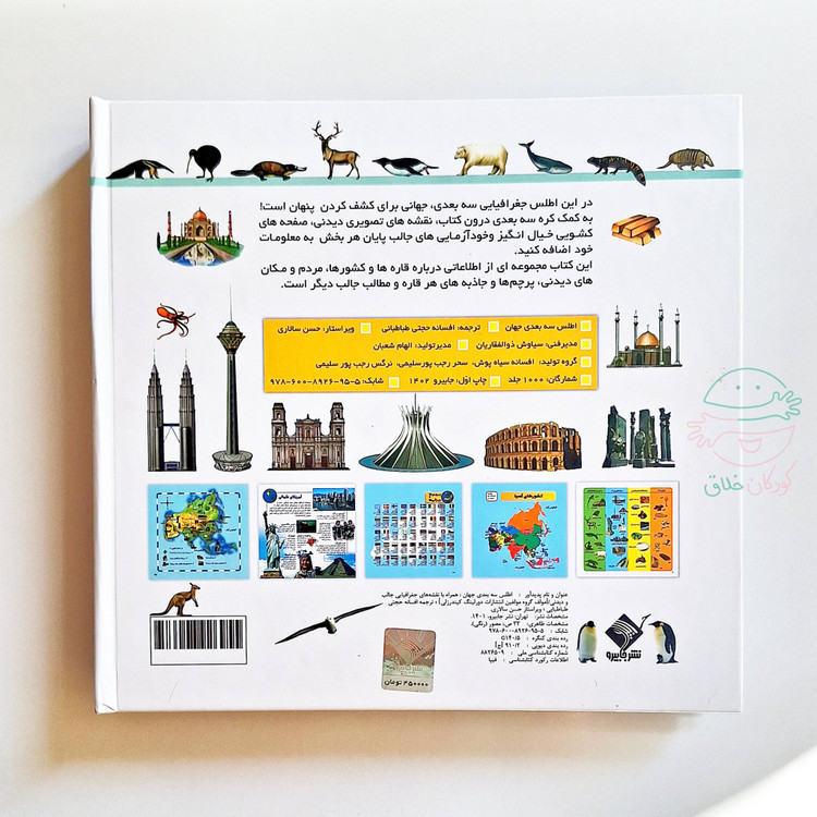 اطلس سه بعدی جهان، مجموعه ای از اطلاعاتی در مورد قاره ها و کشورها، پایتخت و پرچم کشورها، مردم و گویش آن ها، پوشش گیاهی و جانوری، جاذبه های تاریخی و فرهنگی هر قاره و بسیاری از مطالب جالب دیگر است. این کتاب با طراحی خاص و منحصر به فرد خود، یک کره زمین سه بعدی درون خود پنهان کرده است که امکان چرخش و جستجو را دارد. به کمک این کره زمین و نقشه های تصویری و صفحات کشویی، یادگیری برای کودک و نوجوان جذاب تر می شود و در نتیجه علاقه او را برای فراگیری افزایش می دهد.