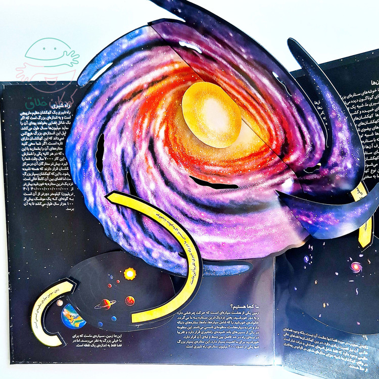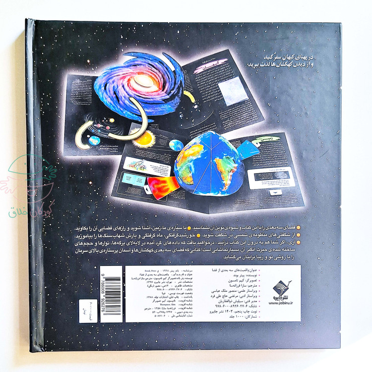 با این کتاب و شیوه ی نوین آن می توانید فضای سه بعدی را بشناسید و با سیاره زمین آشنا شوید و رازهای فضایی آن را بکاوید. از شگفتی های منظومه شمسی در شگفت شوید و خورشیدگرفتگی، ماه گرفتگی و بارش شهاب سنگ ها را بیاموزید. این کتاب با نوارها و حجم های ساخته شده ی حیرت انگیز آن، بسیار تماشایی است و کتابی است که فضای سه بعدی کهکشان ها و آسمان پرستاره ی بالای سرمان را با روشی نو و زیبا برایتان به تصویر می کشد.
