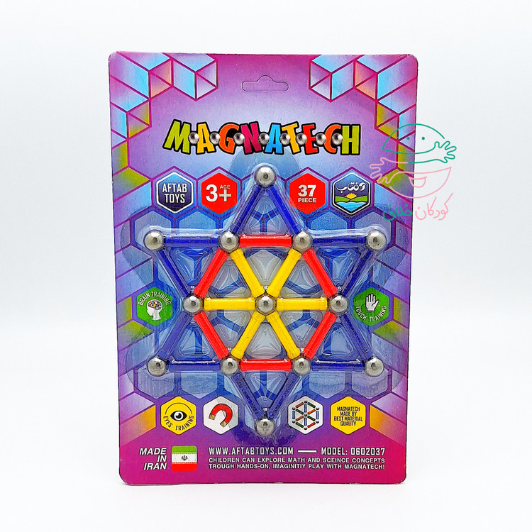 ✔ دارای 37 قطعه شامل 13 گوی فلزی استیل قطر یک سانت و 24 میله دوسر آهنربایی 3 سانتی در 4 رنگ