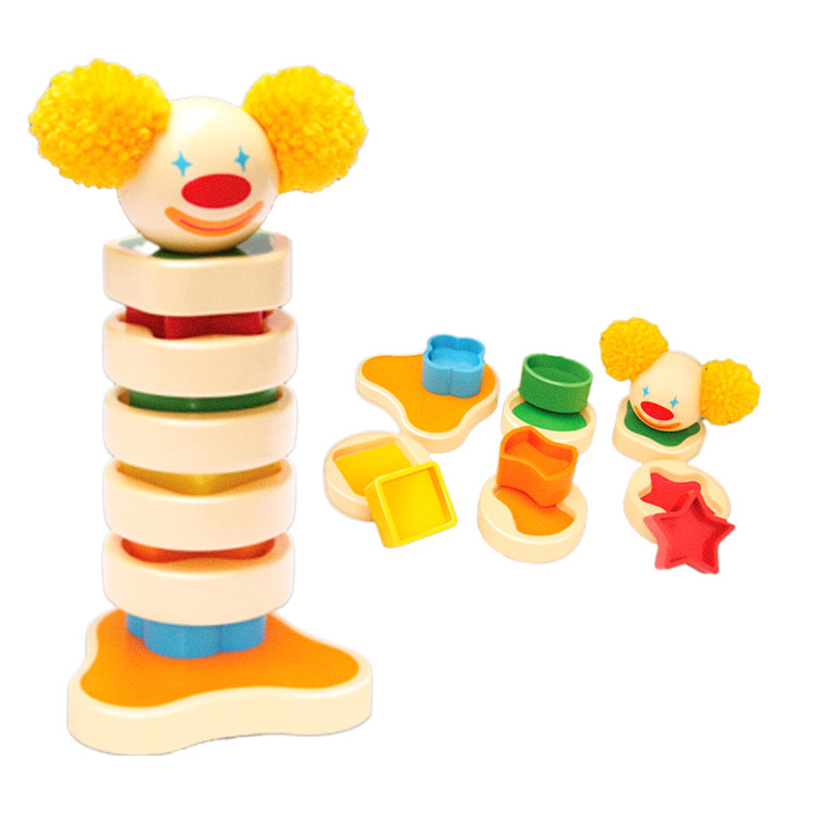 اسباب بازی فکری برج دلقک، یک اسباب بازی فکری و آموزشی مناسب کودکان بالای 2 سال می باشد. این اسباب بازی از 4 اشکال هندسی رنگارنگ (مربع، بیضی، ستاره و..) و 5 صفحه دایره ای شکل که در وجه آن رنگ و شکل مشابه اشکال هندسی قرار دارد که کودک با جایگذاری اشکال هندسی در جای مناسبش میتواند یک دلقک به ارتفاع 22 سانتیمتر بسازد.